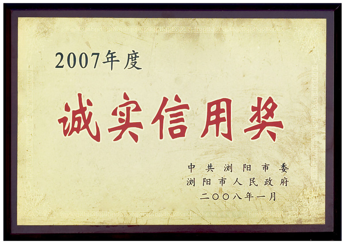被中共浏阳市委、浏阳市人民政府评定为2007年度诚实信用企业
