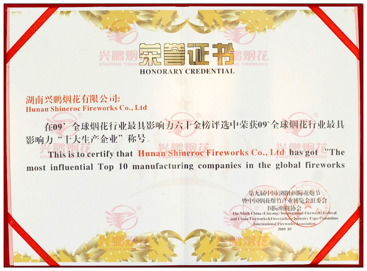 2009年湖南兴鹏烟花成为最具影响力十大生产企业